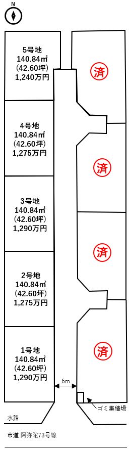 | 備考 | 42.6坪あります 5区画分譲(本物件5号地) お好きなハウスメーカーで建てていただけます! |